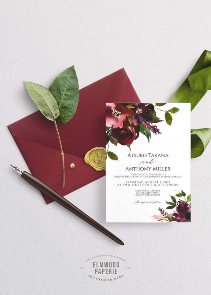 – This burgundy wedding invitation suite by Alethea and Ruth