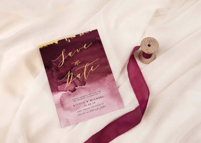 First things first: you’ll want to set the tone of your wedding with save the dates and invitations. Here are some of our favorite burgundy wedding ideas, starting with stationery.