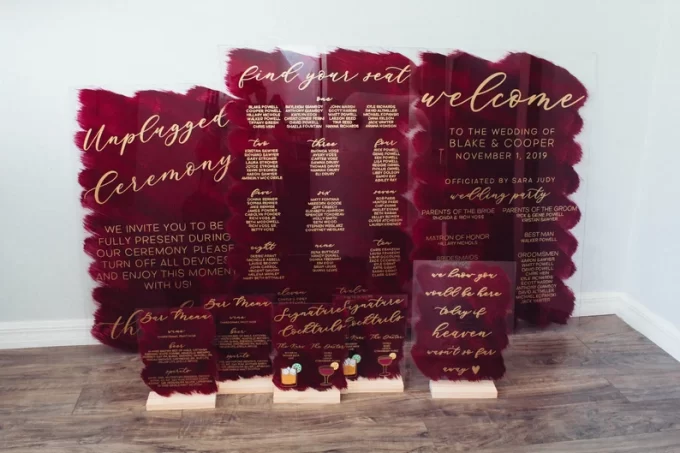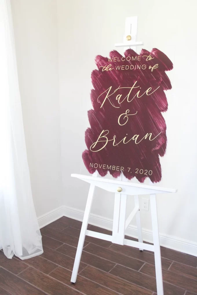 36. Greet guests with this amazing burgundy wedding welcome sign