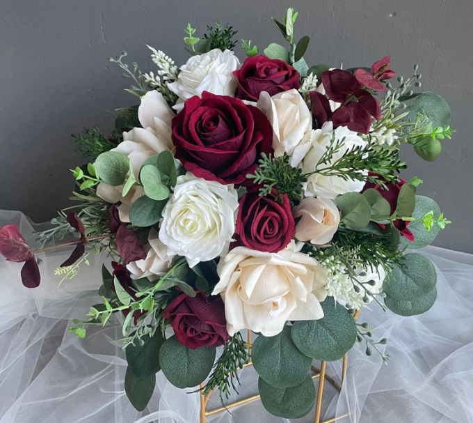 7. Carry this beautiful burgundy wedding bouquet made of sola flowers