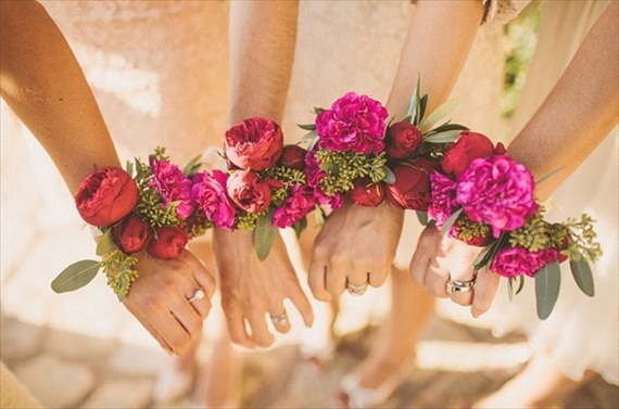 hot pink corsage | photo: evelyn slava via wedding chicks