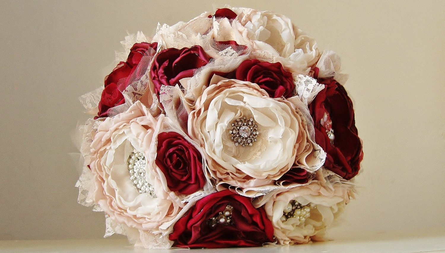 When Andrew & I got married, we picked the first week of December, immediately after Thanksgiving. As such, we were able to infuse our color palette with deep reds, perfect for the holiday season. For instance, our bridesmaids wore red floor-length dresses, groomsmen had matching red rose boutonnieres, and our centerpieces even included these fragrant flowers. Roses are a wonderful option for any wedding budget, since they’re readily available and infuse such wonderful fragrance to your wedding space. You don’t have to go all out with red roses; just a few will do! To inspire you, we’re sharing red rose wedding ideas as a potential color palette and theme for your big day. And, as you know, we’re crazy for handmade wedding finds here at Emmaline Bride, so many of these finds are handmade! Enjoy!