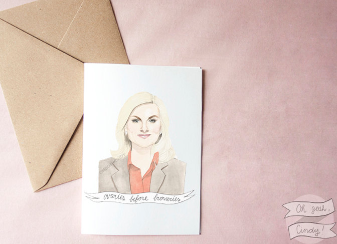 Happy weekend, loves! I know, it’s Superbowl Sunday, and we’re talking Valentine Cards… but honestly, we’re holed up here with a mega snowstorm blast and I’m setting my sights on Valentine’s Day. It all happened when I saw a funny Ron Swanson Valentine’s Day card, and I thought, that’s awesome, because, Swanson. So I searched more handmade valentine cards. And you know what? There are SO MANY amazing handmade artisans out there putting big box card stores to shame! You go.