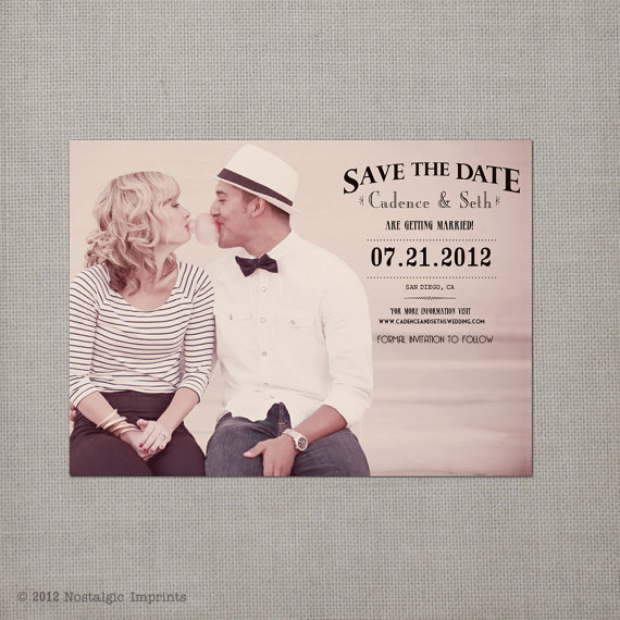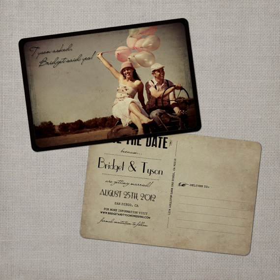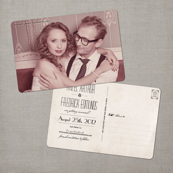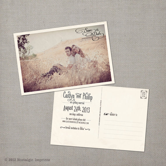 I’m planning a vintage wedding and I want to send save the dates that coordinate with my theme. Do you have any ideas?