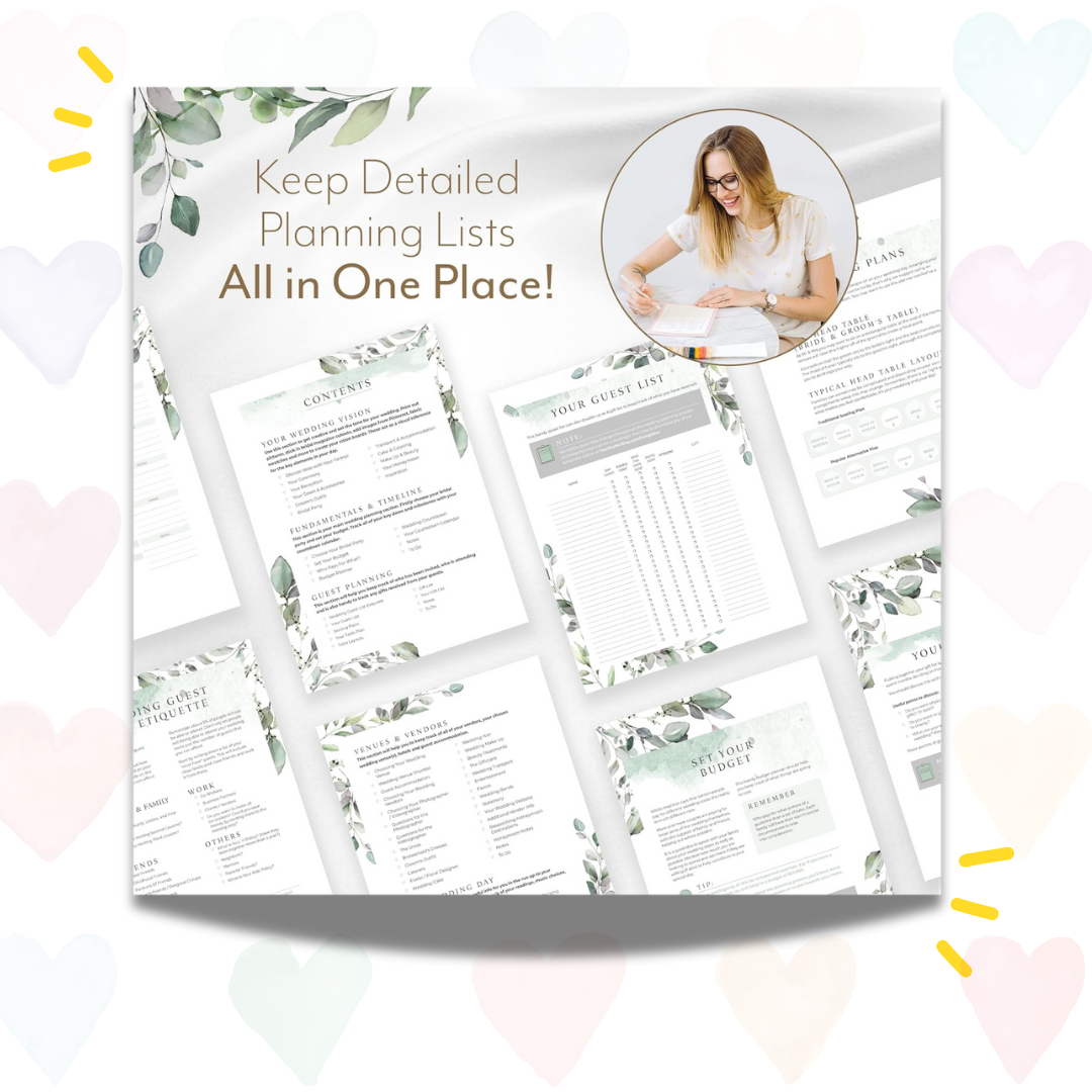 Managing wedding expenses can be overwhelming, but this binder includes a detailed wedding budget tracker to help you plan realistically — and stick to it. From your dress to your décor, you’ll be able to see where your money is going and adjust as needed.